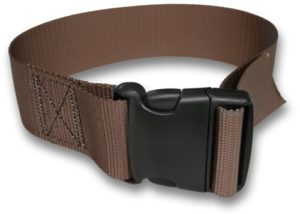The best tool for the job is a 2-inch side release buckle belt with polyester webbing. Inexpensive, durable and will absolutely do the job.